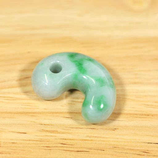 商品説明 小滝産翡翠の勾玉です、縦29ミリ少し小さめサイズの勾玉、頭にヒビがあります、明るい緑がパラパラ非常に綺麗です。 |